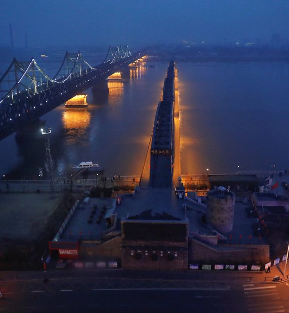 A breathtaking night view of a historic bridge, illuminated beautifully over the river, reflecting its rich history and charm.
